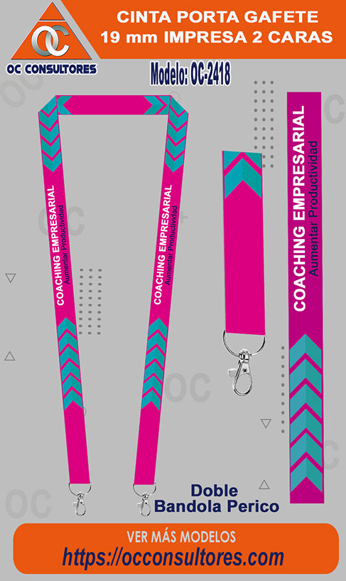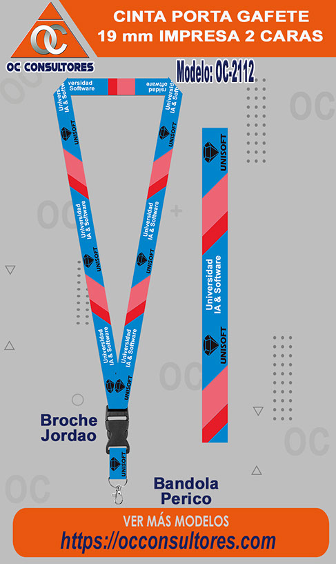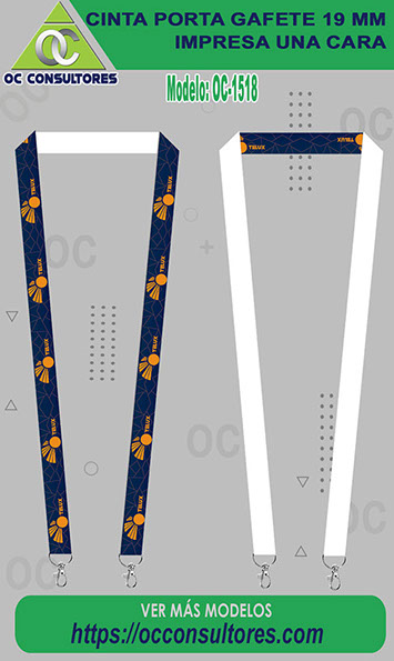 Cintas para gafetes : también conocidas como landyards promocionales o portagafetes promocionales, son ampliamente utilizadas en la empresas para que empleados porten su identificación de forma visible y elegante, la cinta se personaliza a todo color por un lado o ambos lados con proceso de sublimado (Cinta blanca y se imprime a todo color con el diseño o logo de tu empresa).